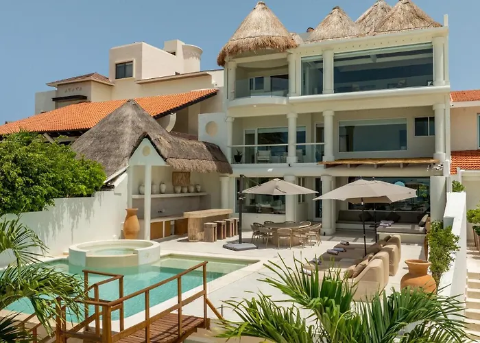 Captivating Beachfront Villa W/ Infinity Pool, localizada no bairro Hotelera, dispõe de pátio com vista para o mar. A acomodação está localizada a 1.8 km da Discoteca Coco Bongo e dispõe de terraço e piscina privada para maior prazer.